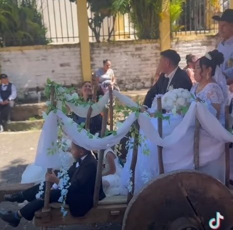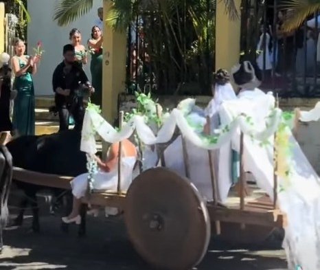El relato visual inicia con una imagen cargada de simbolismo: la novia, radiante en su vestido blanco, camina sobre la carretera principal de la mano de su padre. Sin embargo, el detalle que robó la atención de los locales fue su escolta; una imponente yunta de bueyes que abría paso hacia la iglesia, simbolizando la nobleza del trabajo en la tierra y la herencia familiar.