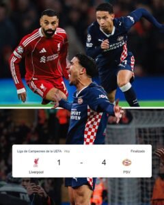 El Liverpool sufrió una de sus derrotas más contundentes de la temporada al caer 4-1 frente al PSV Eindhoven, en un partido donde el conjunto