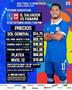 La Federación Salvadoreña de Fútbol (FESFUT) hizo públicos los precios para los próximos partidos de eliminatorias mundialistas ante Panamá y Guatemala, que se disputarán el