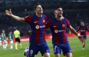 Robert Lewandowski cabeceó el gol de la victoria en el segundo tiempo y el Barcelona remontó para vencer a la Real Sociedad y liderar la