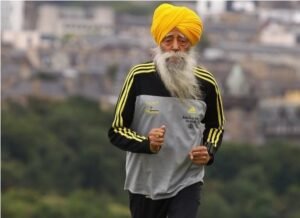 El atleta de origen indio, que comenzó a correr a los 89 años y completó maratones hasta los 101 Fauja Singh, reconocido internacionalmente como el