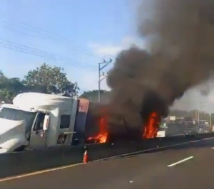 La mañana del sábado 15 de marzo, una rastra provocó tráfico en la carretera que de Sonsonate conduce a San Salvador, a la altura del