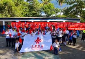 Embajador de China visitó escuela en el cantón Joya Grande, destacando la cooperación con El Salvador.